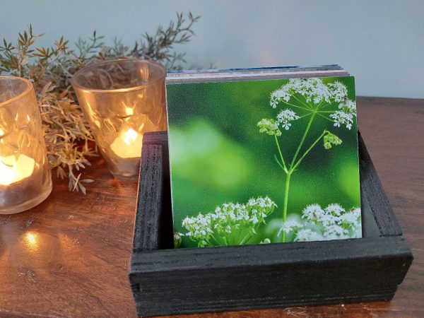 Deze onderzetter brengt een uniek stukje Nederlandse natuur direct op je tafel. De afbeelding toont het fluitenkruid, een iconische plant die in het voorjaar en de vroege zomer uitbundig bloeit in de bermen. Prachtige bossen met fijne witte bloemetjes, die door vlinders, bijtjes en andere gevleugelde diertjes druk bezocht worden, vormen samen een klassiek Hollands plaatje.